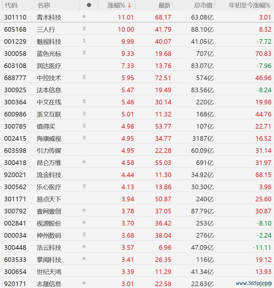 格隆汇4月20日|A股市场AI应用股集体上涨,其中,青木科技涨11%,三人行、魅视科技10CM涨停,蓝色光标涨超9%,润达医疗涨超7%,中控技术、法本信息、中文在线、浙文互联涨超5%,值得买、海康威视、引力传媒、昆仑万维、流金科技、乐心医疗涨超4%,易点天下、壹网壹创、视源股份、神州数码、浩云科技、掌阅科技、世纪天鸿、志晟信息涨超3%。